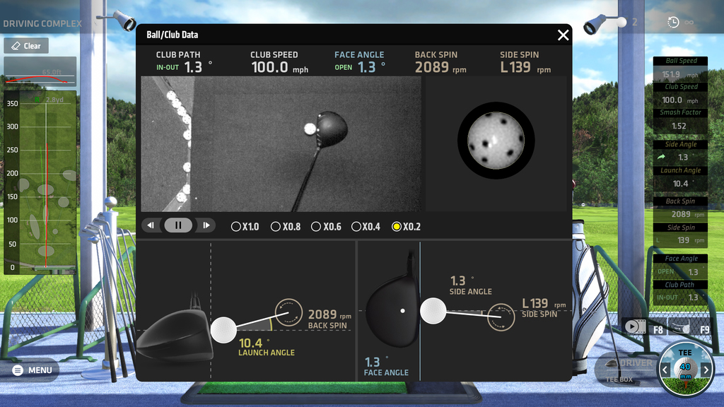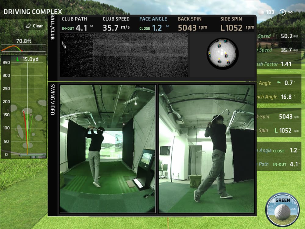 ボールを打つとクラブとボールの動きを天井から撮影した映像を見ることができたり、クラブがボールに当たった瞬間のフェイスアングル画像も見ることができます。